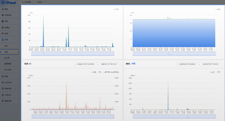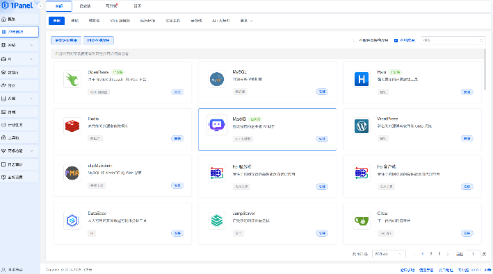 1Panel(飞致云旗下开源项目) 提供了一个直观的 Web 界面,帮助用户轻松管理 Linux 服务器中的应用、网站、文件、数据库以及大语言模型(LLMs)等。